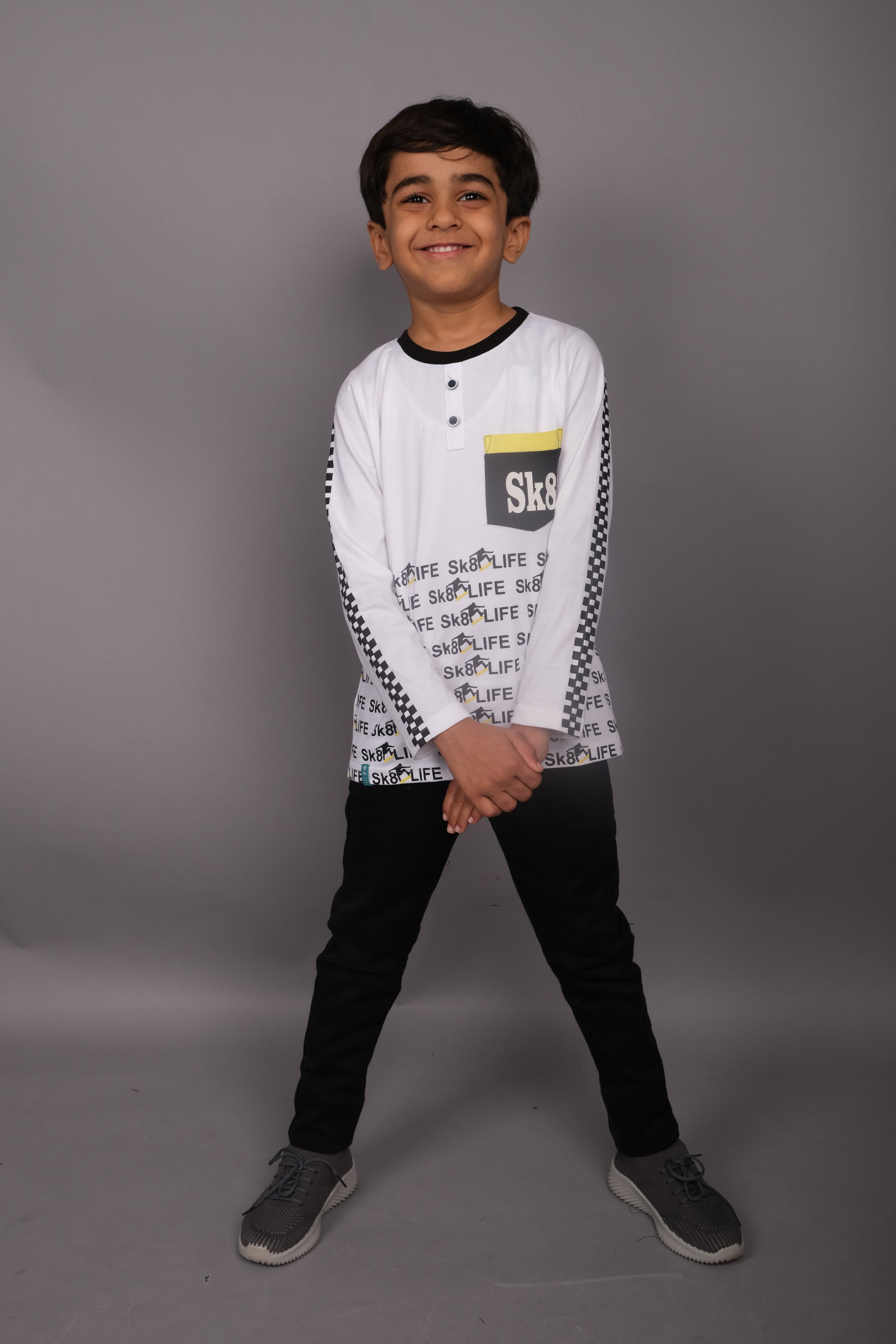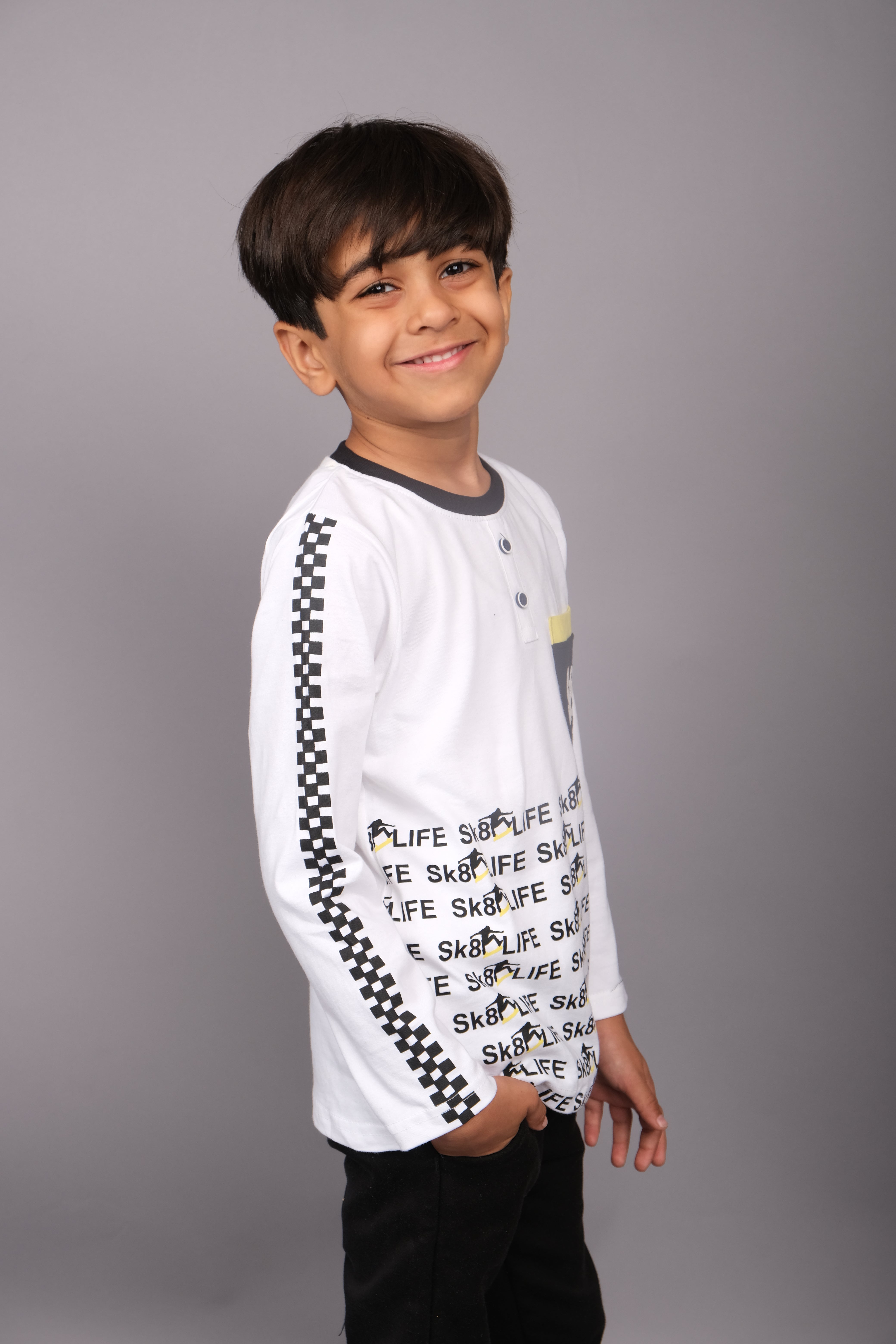 This boys 3PIN Printed T-Shirt in White Color is a must-have in every boy's wardrobe. Crafted with the finest quality of cotton, this t-shirt ensures optimal comfort. Its sophisticated pinstripe print adds a stylish edge to the overall look. The half sleeves and round neckline provides extra comfort and breathability....