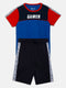 Boys Embossed Letter Round Neck T-Shirt - Navy Blue
