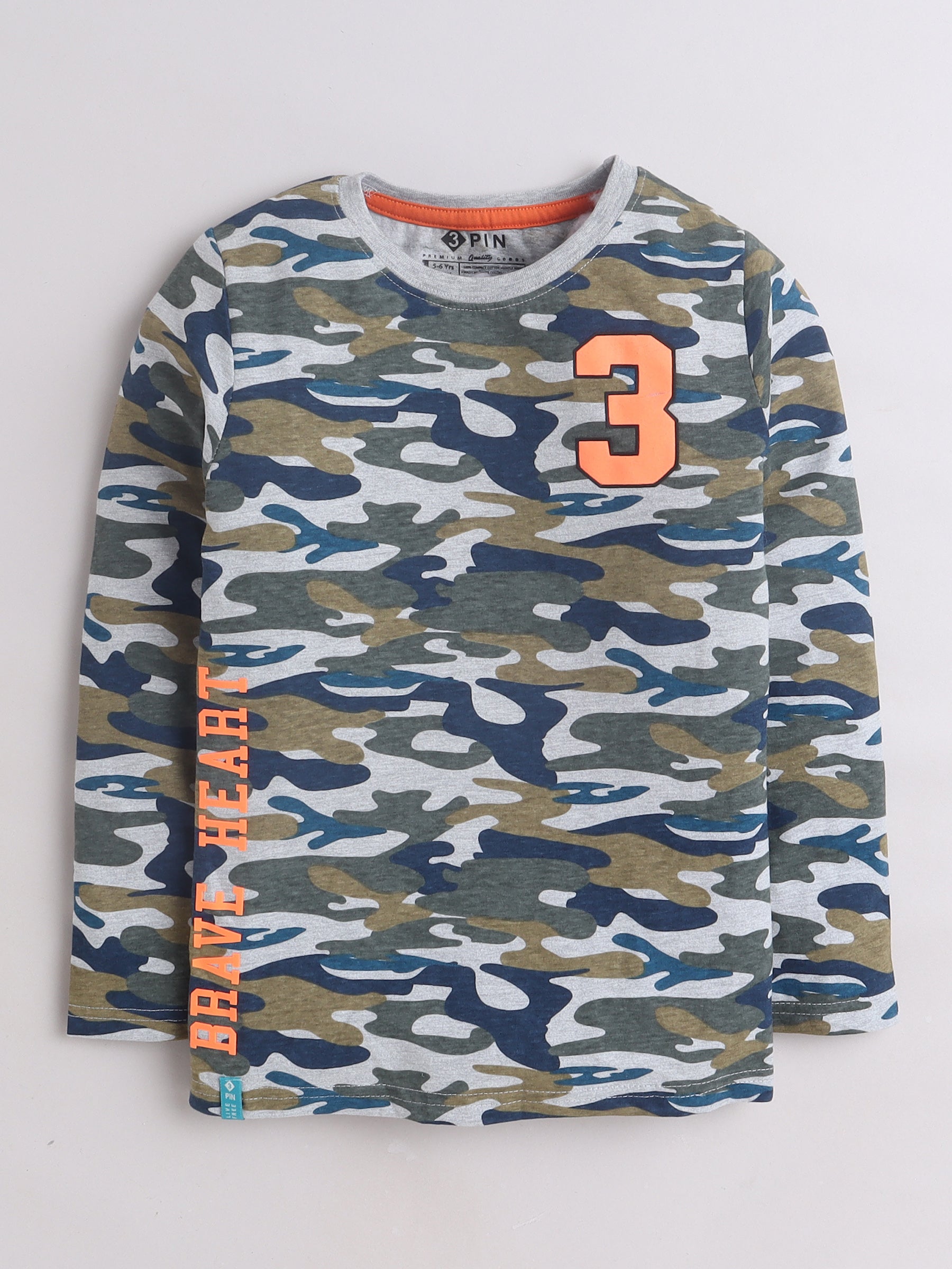 Boys Cotton camouflage Printed Round Neck T-Shirt