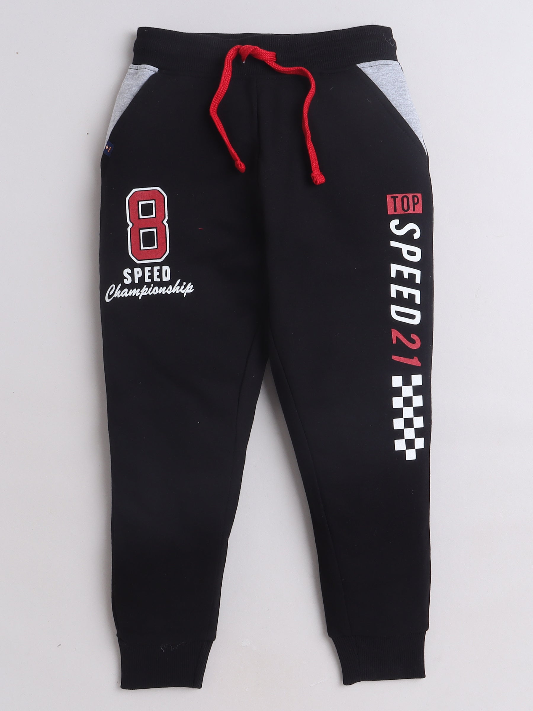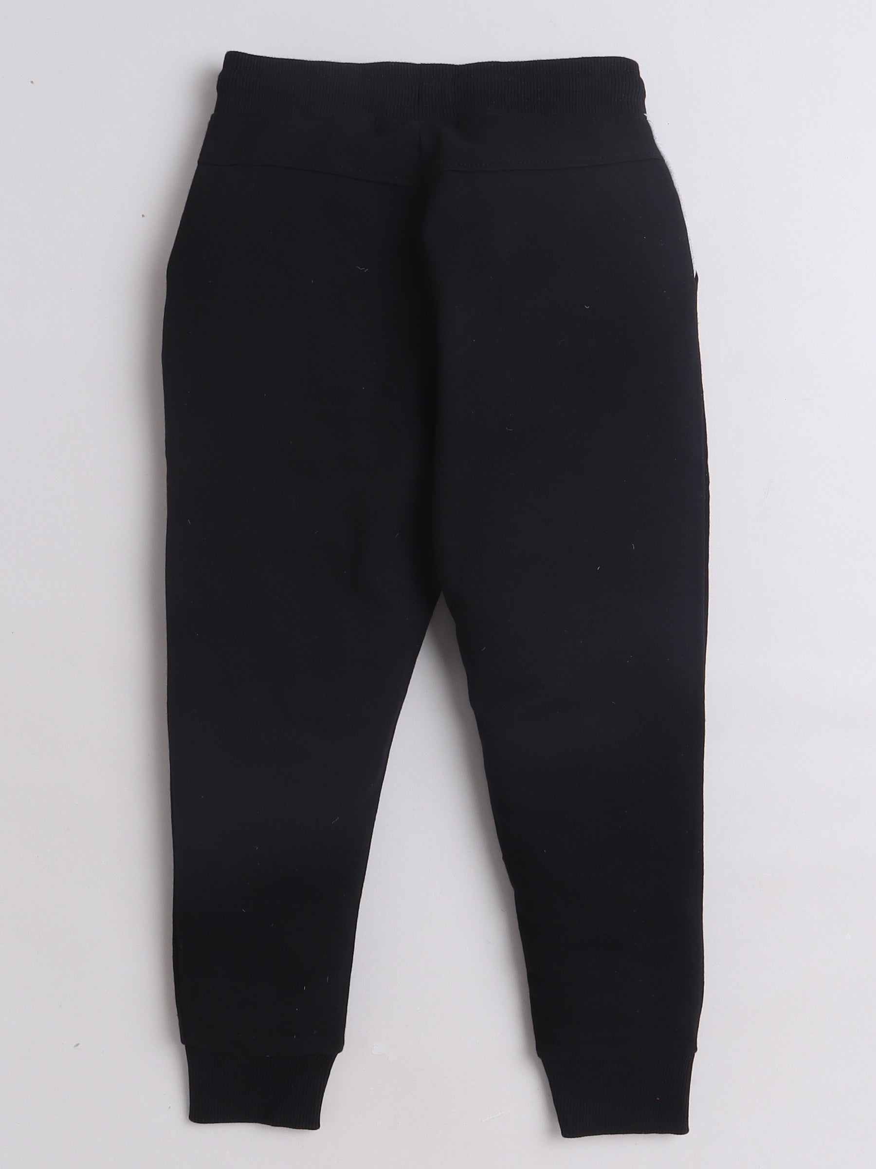 Boys' Cotton Solid Joggers With Drawstring Closure - Black