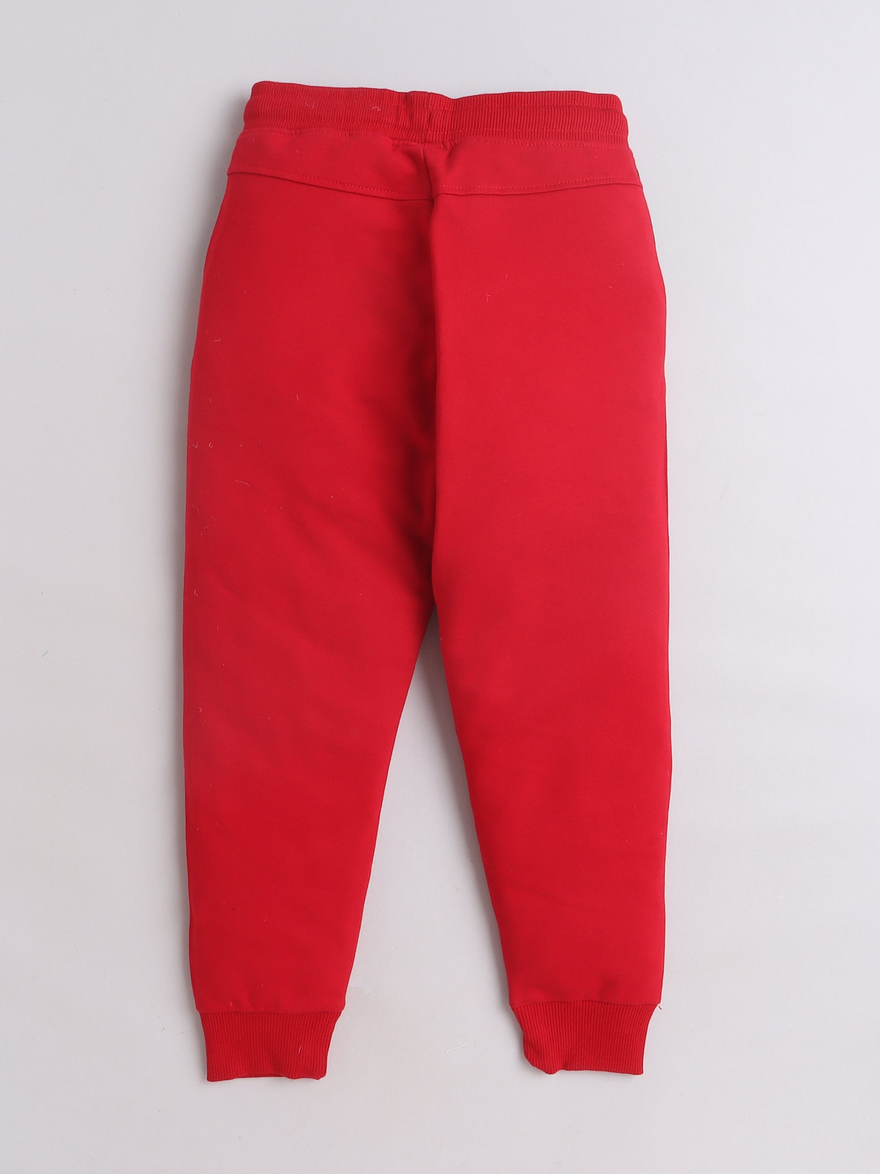 Boys' Cotton Solid Joggers With Drawstring Closure - Red
