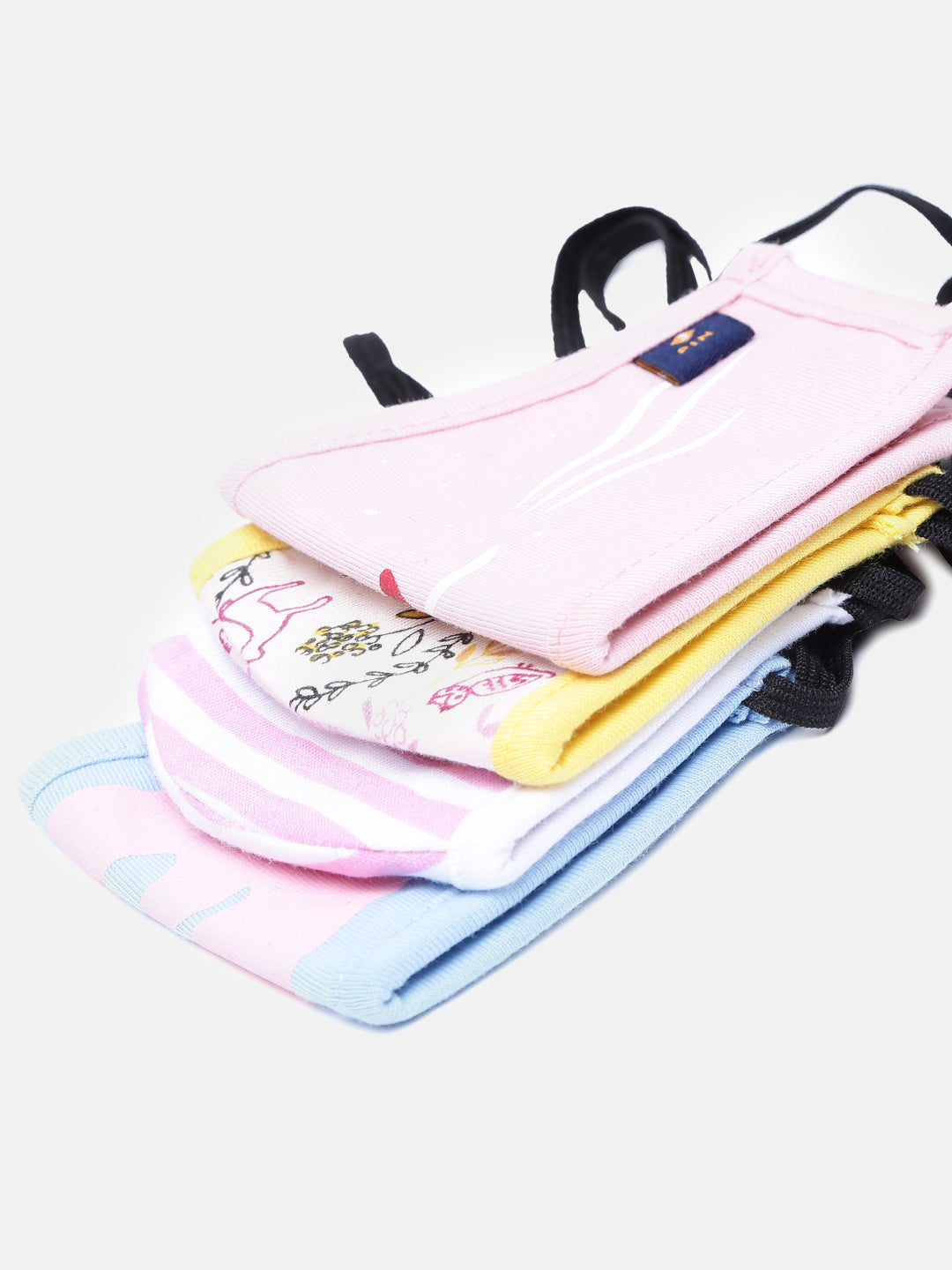Unisex Kids Printed Fashionable Anti-Pollution Face Mask - Pack of 4