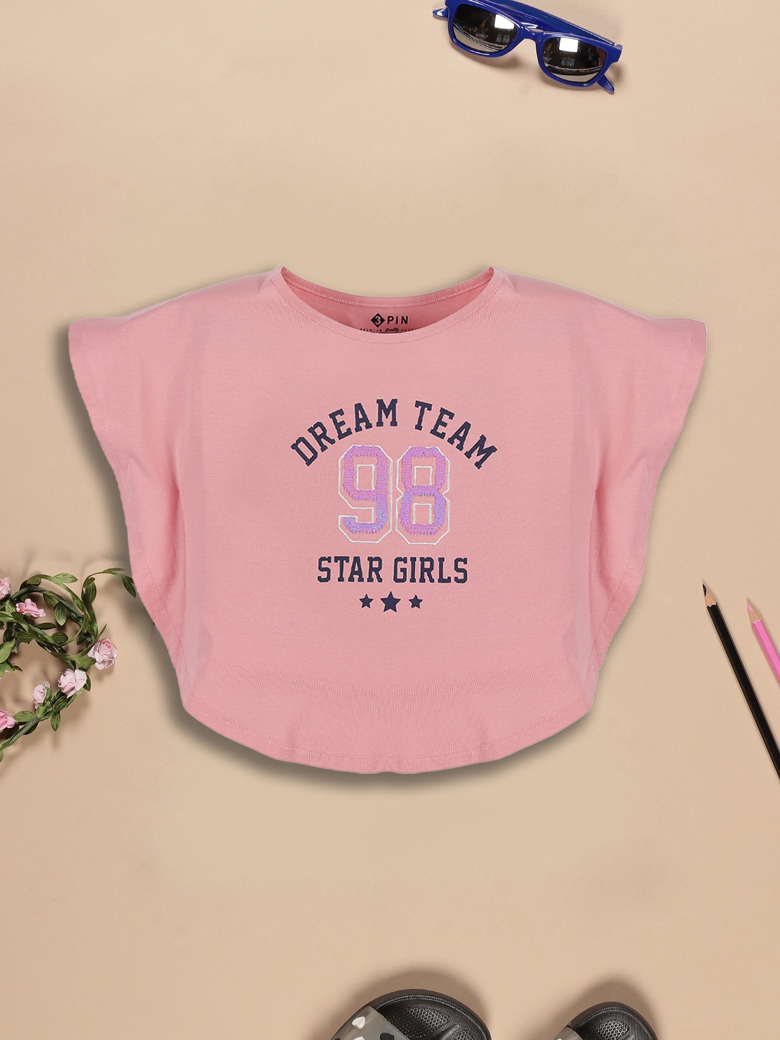 Your little girl will look stylish and feel comfortable in this trendy multicolor top. Featuring a classic round neckline and short sleeves, it offers the perfect blend of fashion and ease. Made from soft, breathable fabric, it ensures all-day comfort, making it ideal for playtime, outings, and casual wear. The...