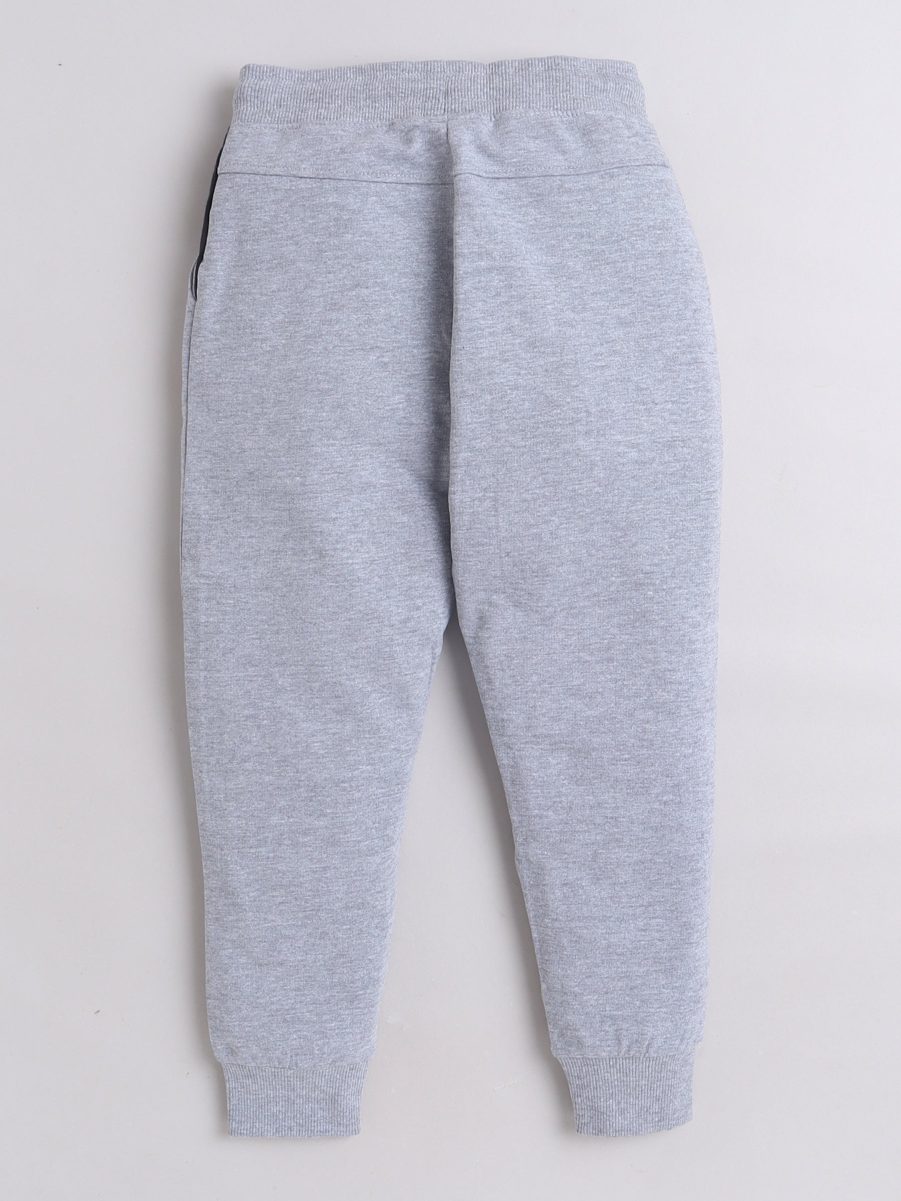 Boys' Cotton Solid Joggers With Drawstring Closure - Grey Melange