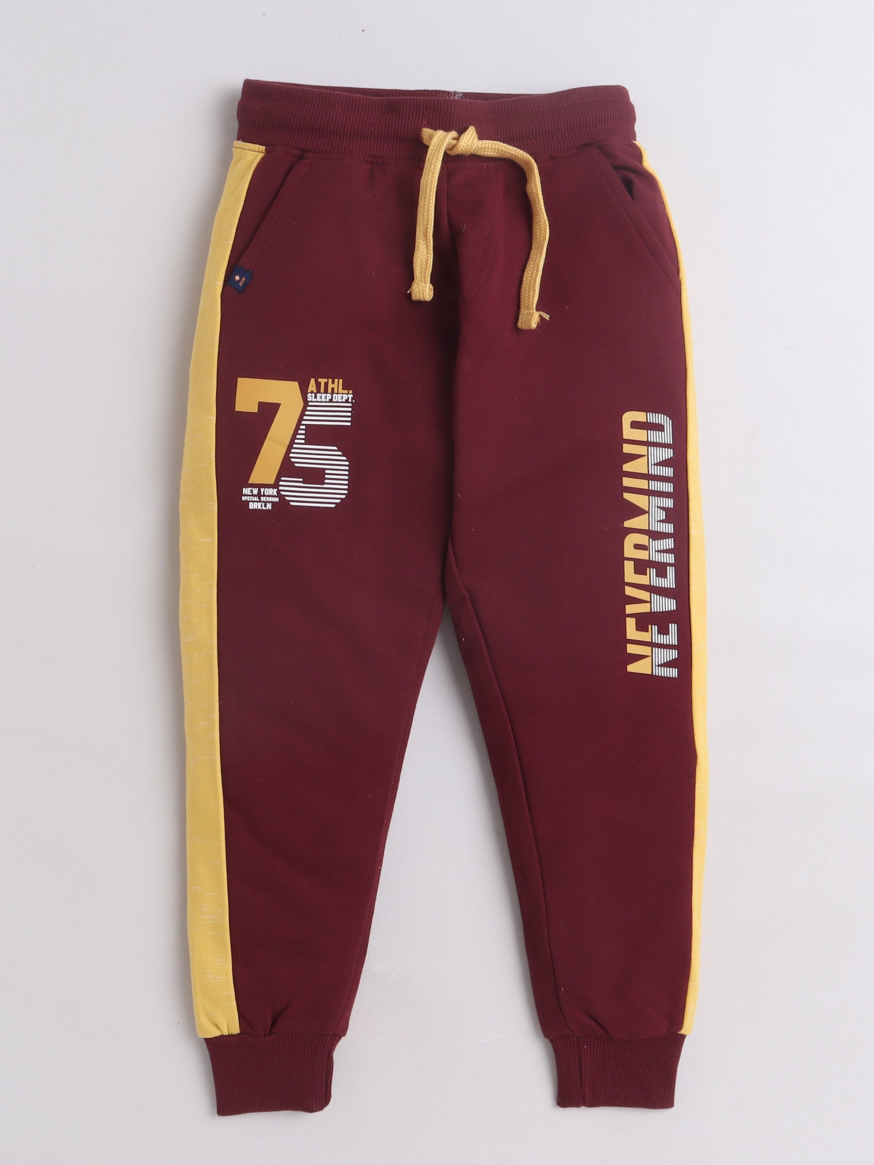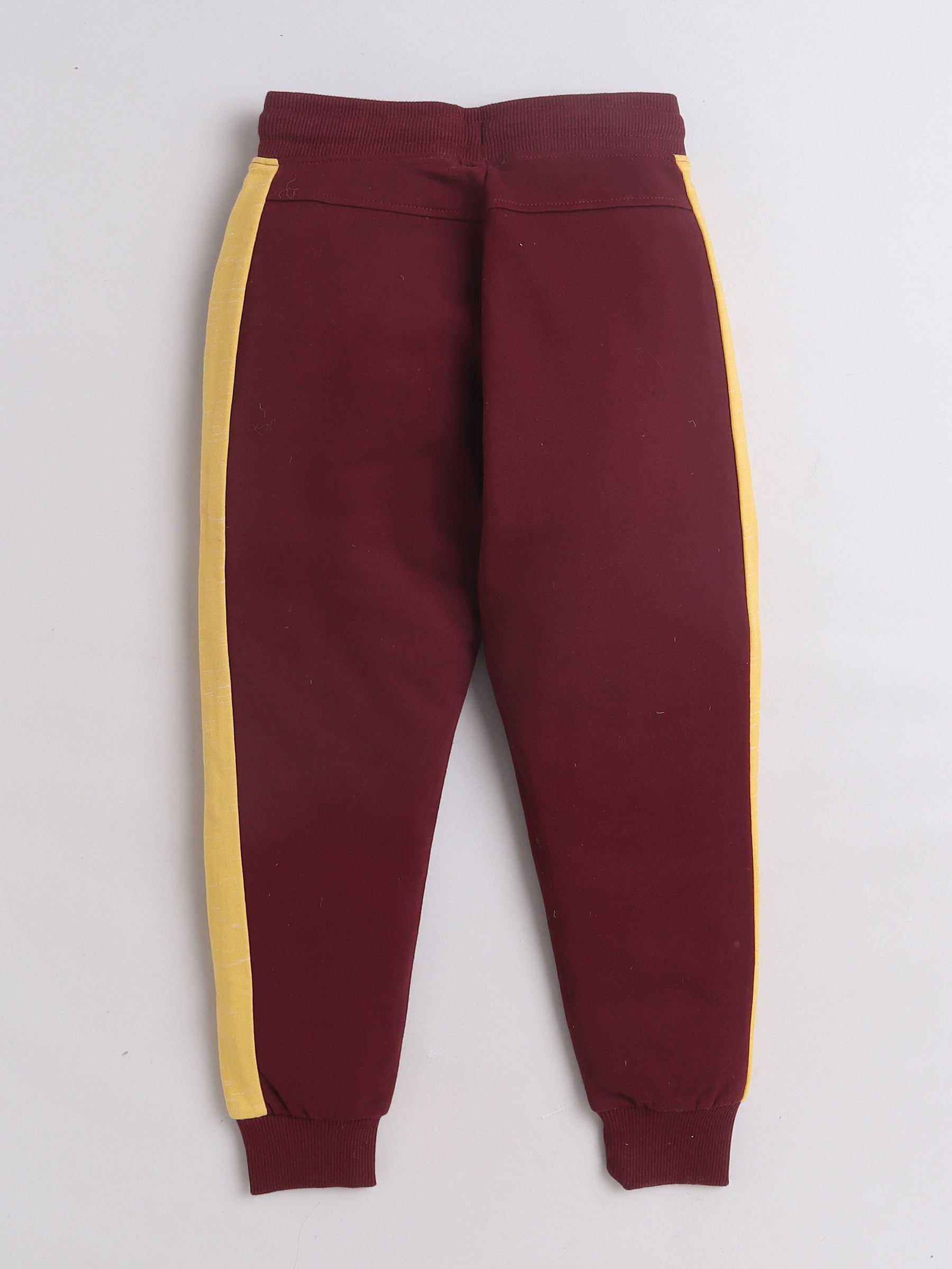 Boys' Cotton Solid Joggers With Drawstring Closure - Burgundy