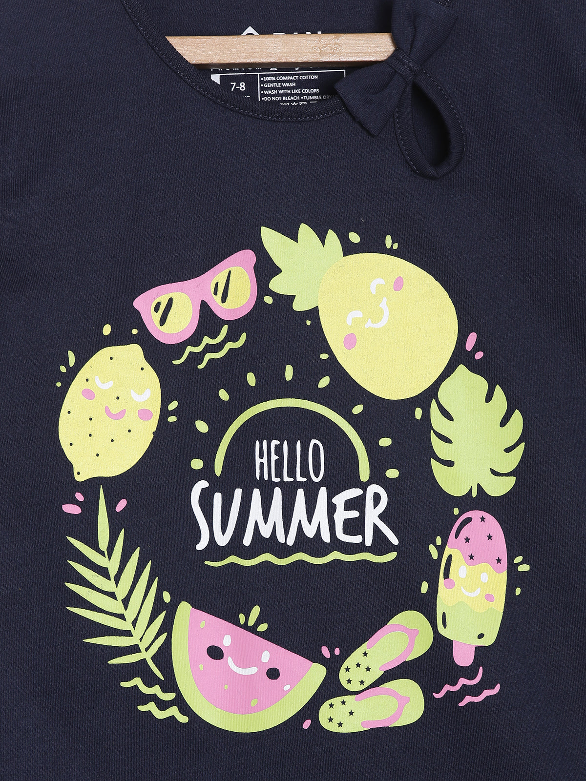 Keep your little one cozy and stylish with this girls cotton half-sleeve crew neck T-shirt. Crafted from soft, breathable cotton, this t-shirt ensures all-day comfort for active kids. The crew neck design adds a classic touch, making it perfect for layering or wearing on its own. Whether paired with jeans, joggers, or shorts, this versatile T-shirt is an essential addition to any wardrobe. Durable and easy to care for, it's ideal for everyday wear, playtime, or casual outings.