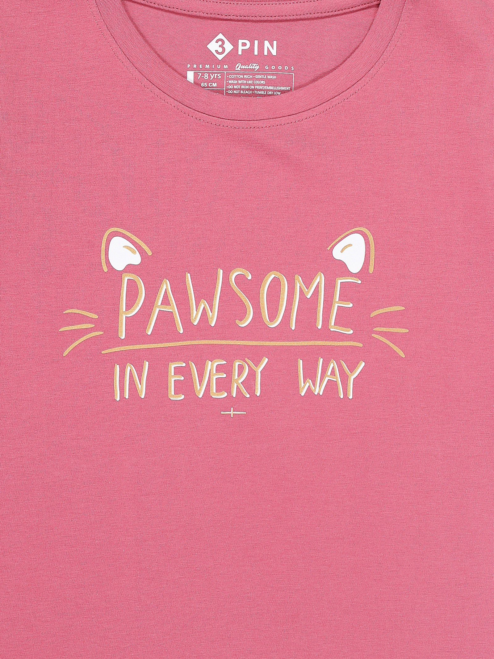 Girls Cotton Printed Round Neck T-Shirt