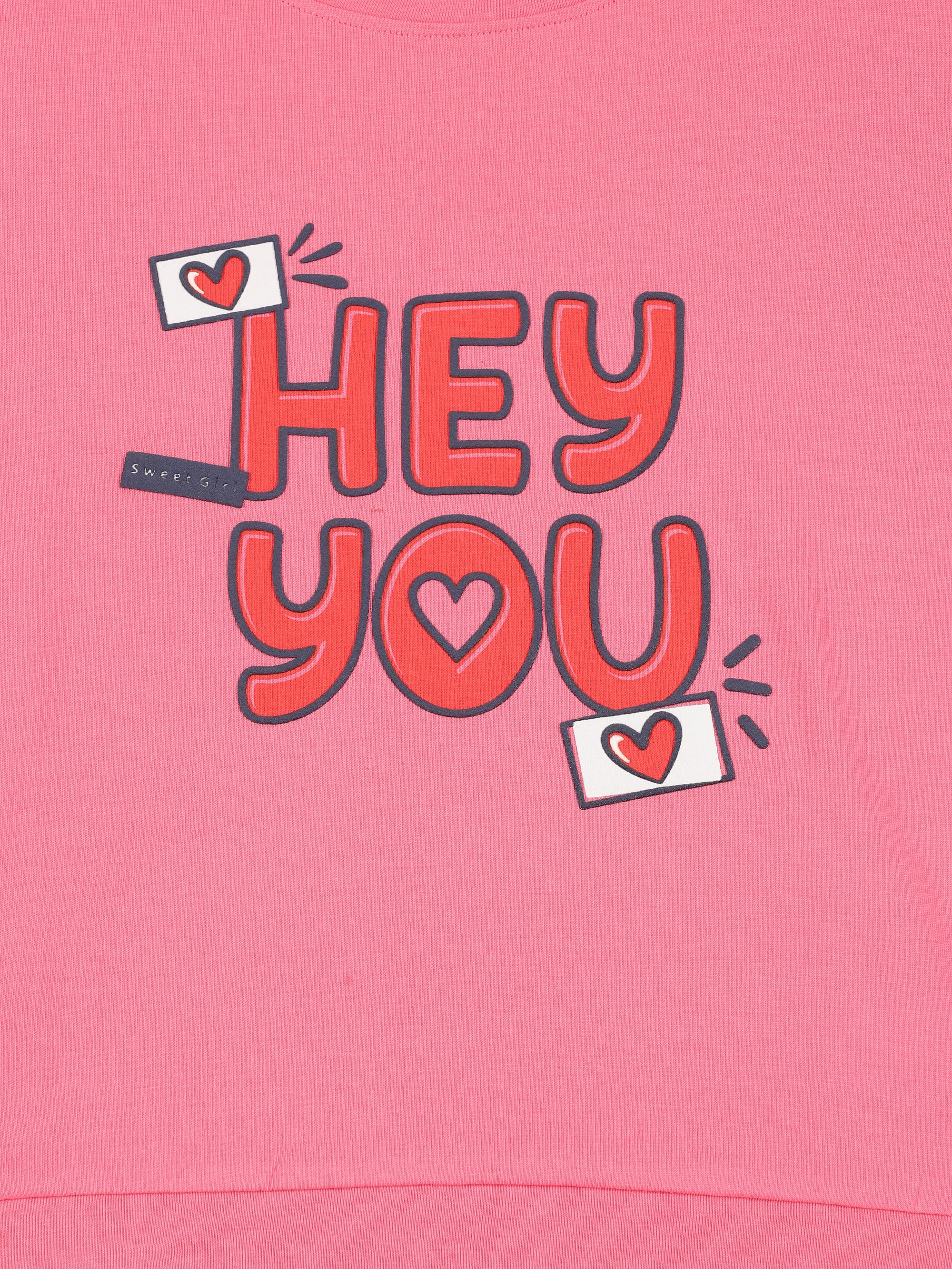 Girls Cotton Printed Round Neck T-Shirt