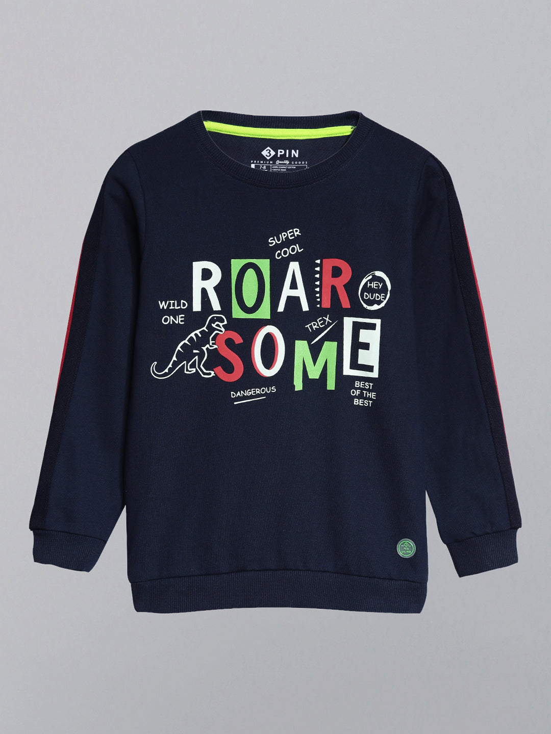 The Boys 3PIN Stylish Printed Sweatshirt-Navy is the perfect pick for your stylish little guy. Crafted from 100% cotton fabric, it's lightweight and breathable to keep him comfortable. The classic navy hue and bold 3-PIN design give it a stylish look that's sure to draw compliments. The ribbed hem and...