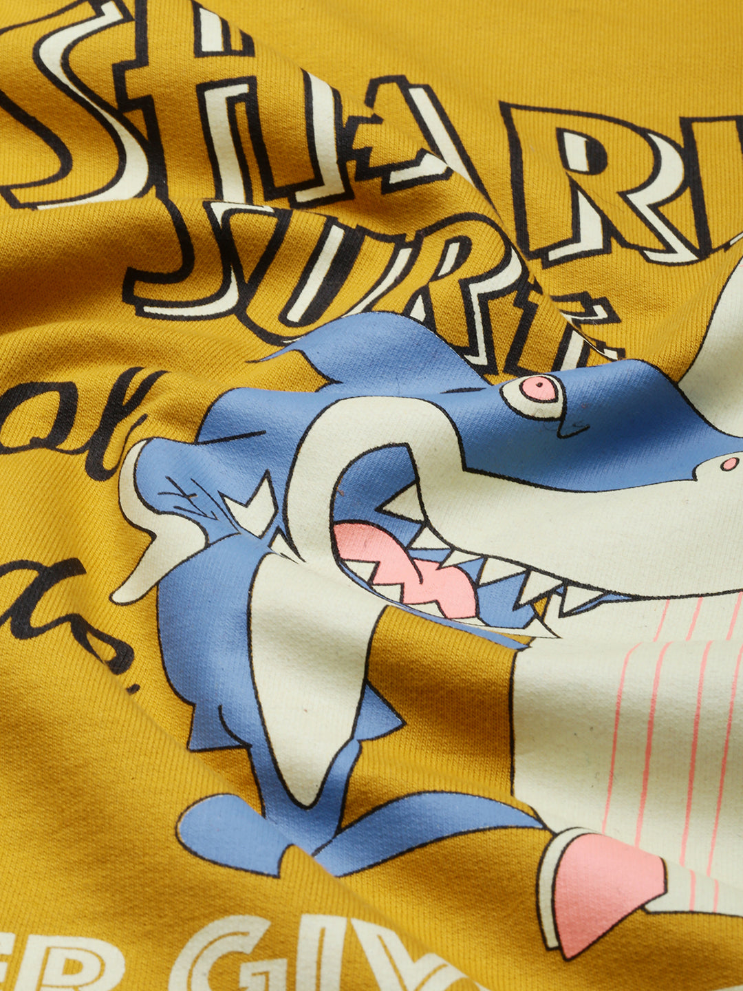 Your little guy will be ready for cool weather and a day of play in this Boys 3PIN Shark Printed Sweatshirt-Mustard. This child-friendly sweatshirt is designed with a bold screen-printed shark graphic and features long-lasting ribbed cuffs and hem for an extra layer of warmth. The bright and cheerful mustard...