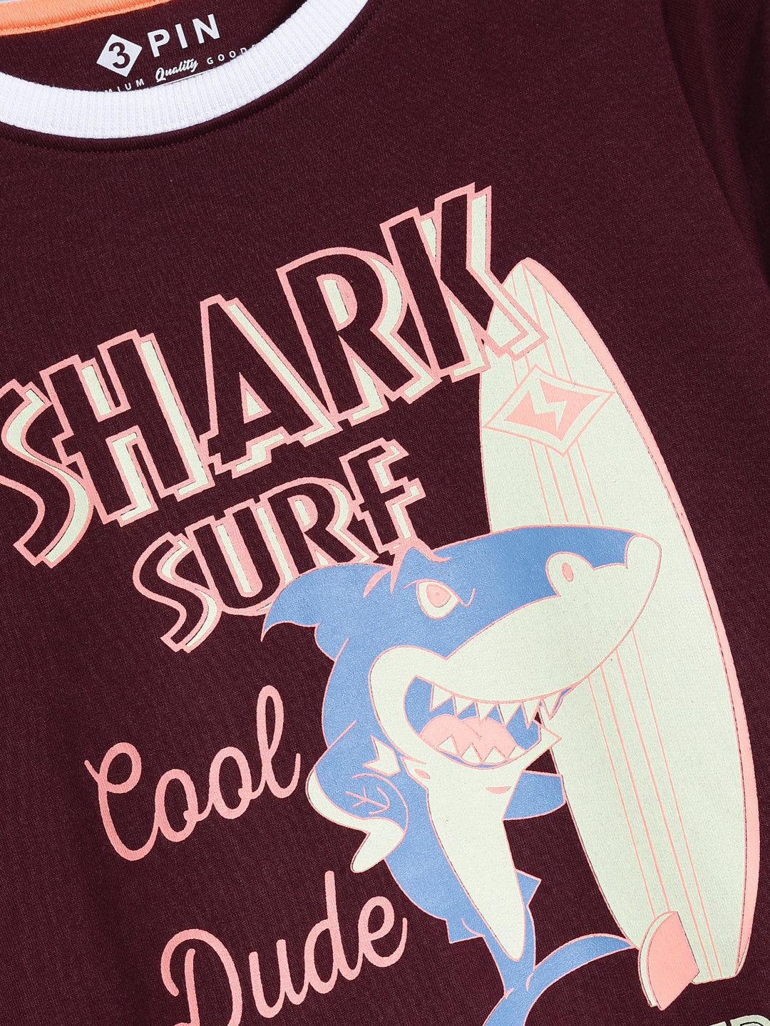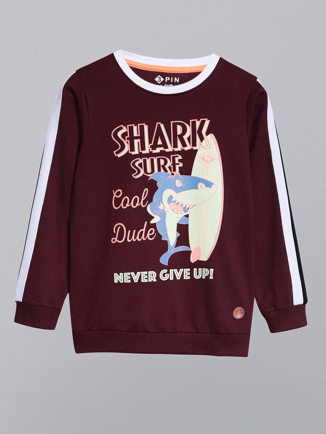 This Boys 3PIN Shark Printed Sweatshirt-Burgundy is perfect for your little one's wardrobe. Showcasing a cool shark design, it's crafted from soft fabrics for ultimate comfort. Available in a bold burgundy color, it features a classic crew neckline, long sleeves, and ribbed knit trims for added comfort. The perfect piece...