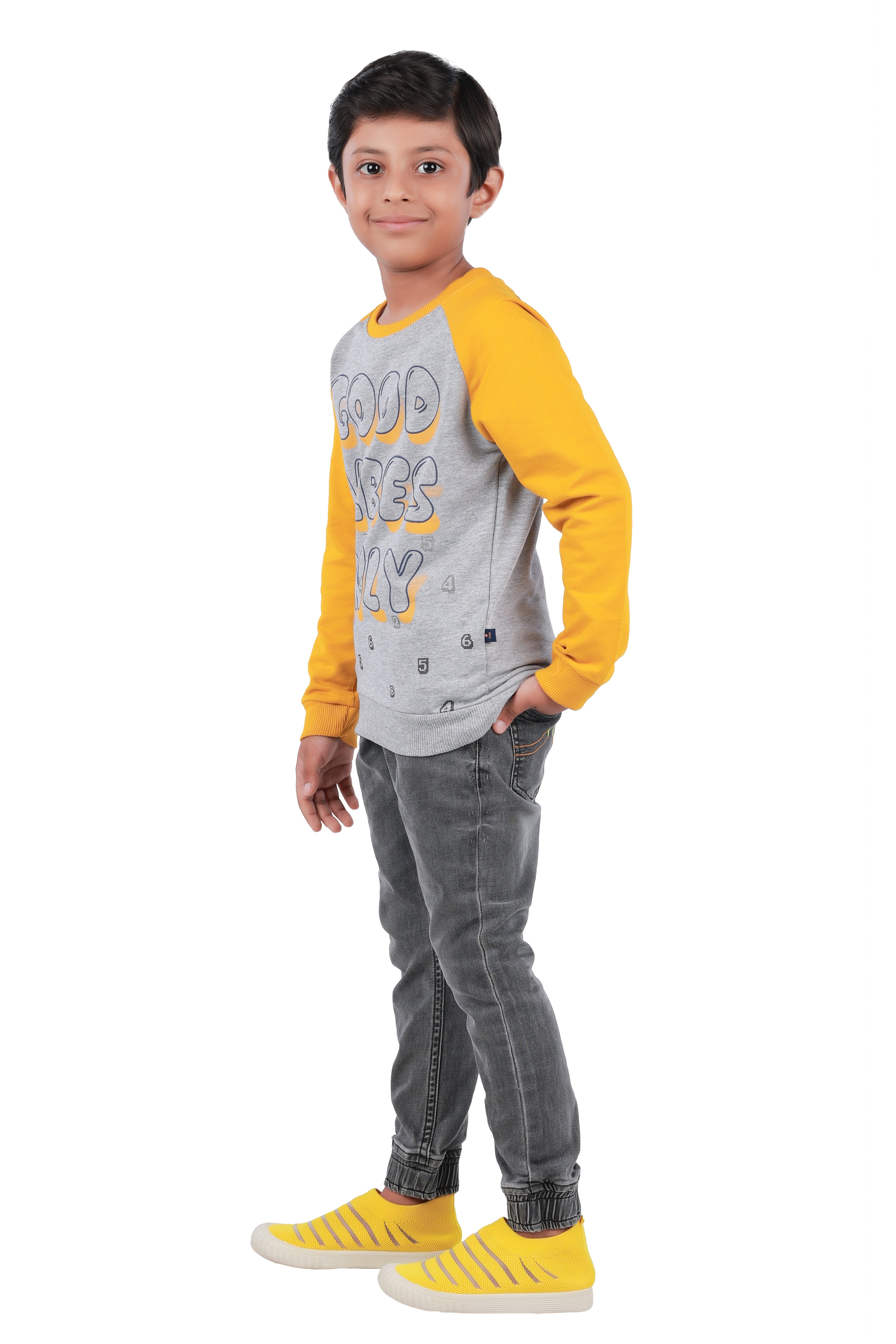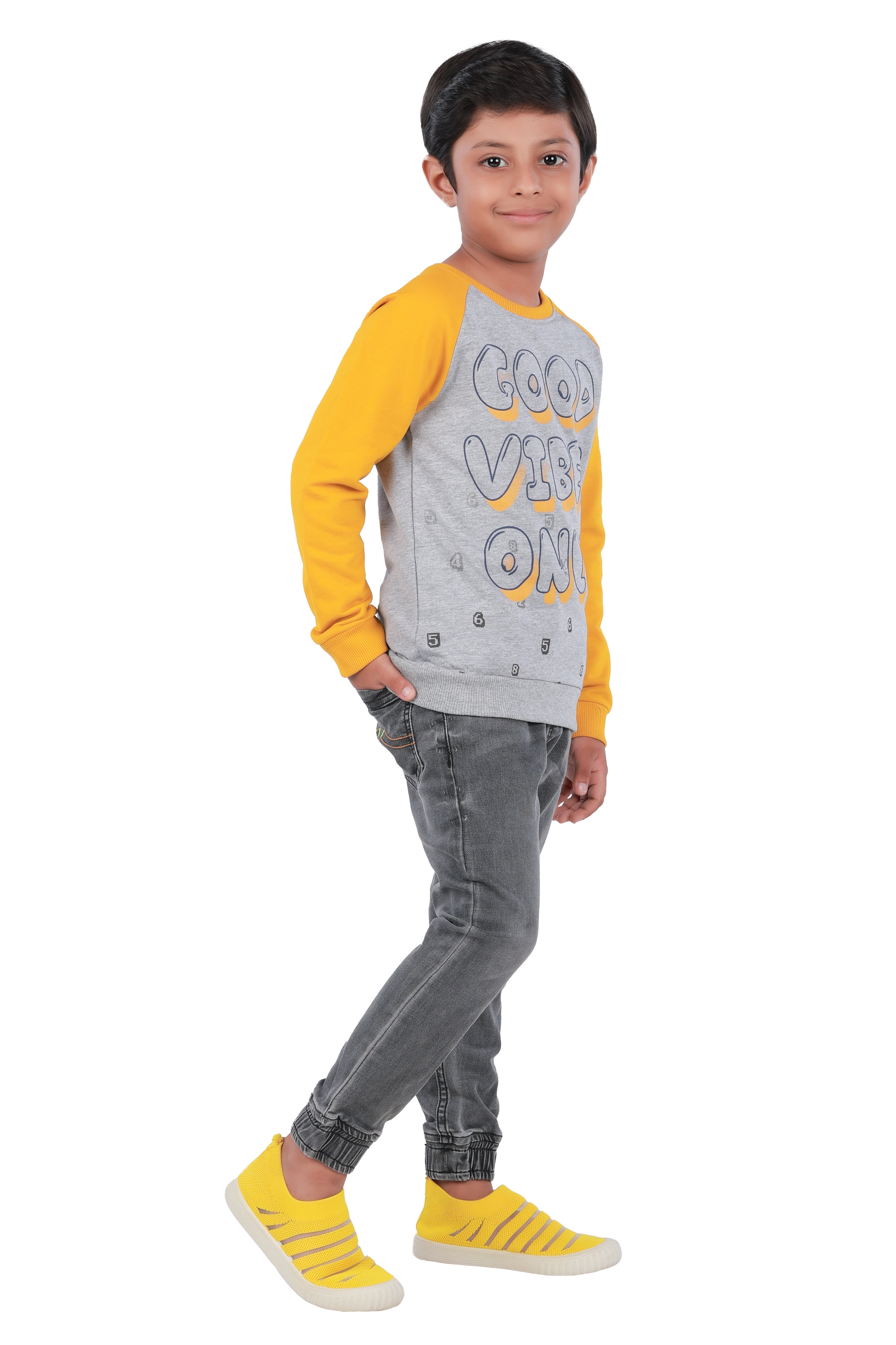 This Boys 3pin Printed Sweatshirt is the perfect choice when it comes to warm, casual style. Crafted from a premium cotton blend, this Grey Melange sweatshirt is soft and comfortable. It features a printed 3pin design across the front and long raglan sleeves with ribbed cuffs. The hood provides cozy...