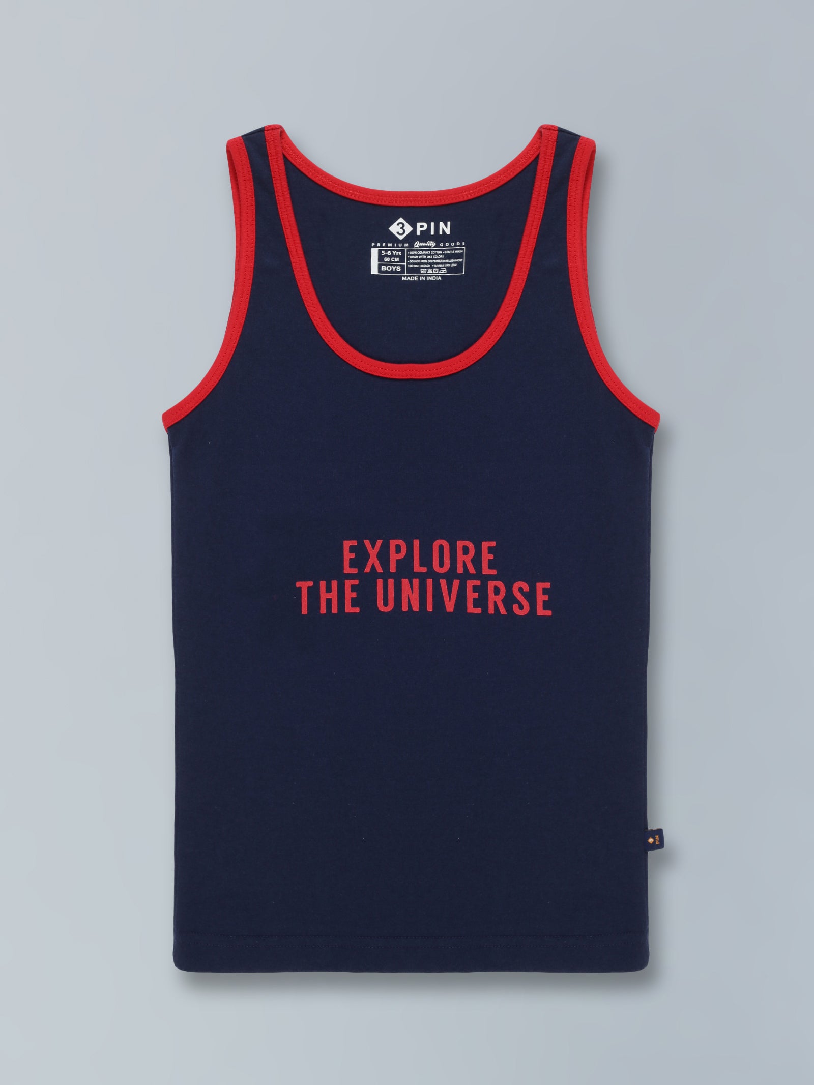 This Boys Navy Typography Explore The Universe Printed Cotton Vest is perfect for your little explorer's summer wardrobe. The navy blue fabric is lightweight and comfortable for all day wear, while the Explore The Universe print in bold typography is a fun addition. The relaxed fit and adjustable straps provide a great fit and allows your little one ample room for movement and growth. Whether they're hitting the beach or running around the backyard, this stylish and practical vest is a great addition to your boy's wardrobe.