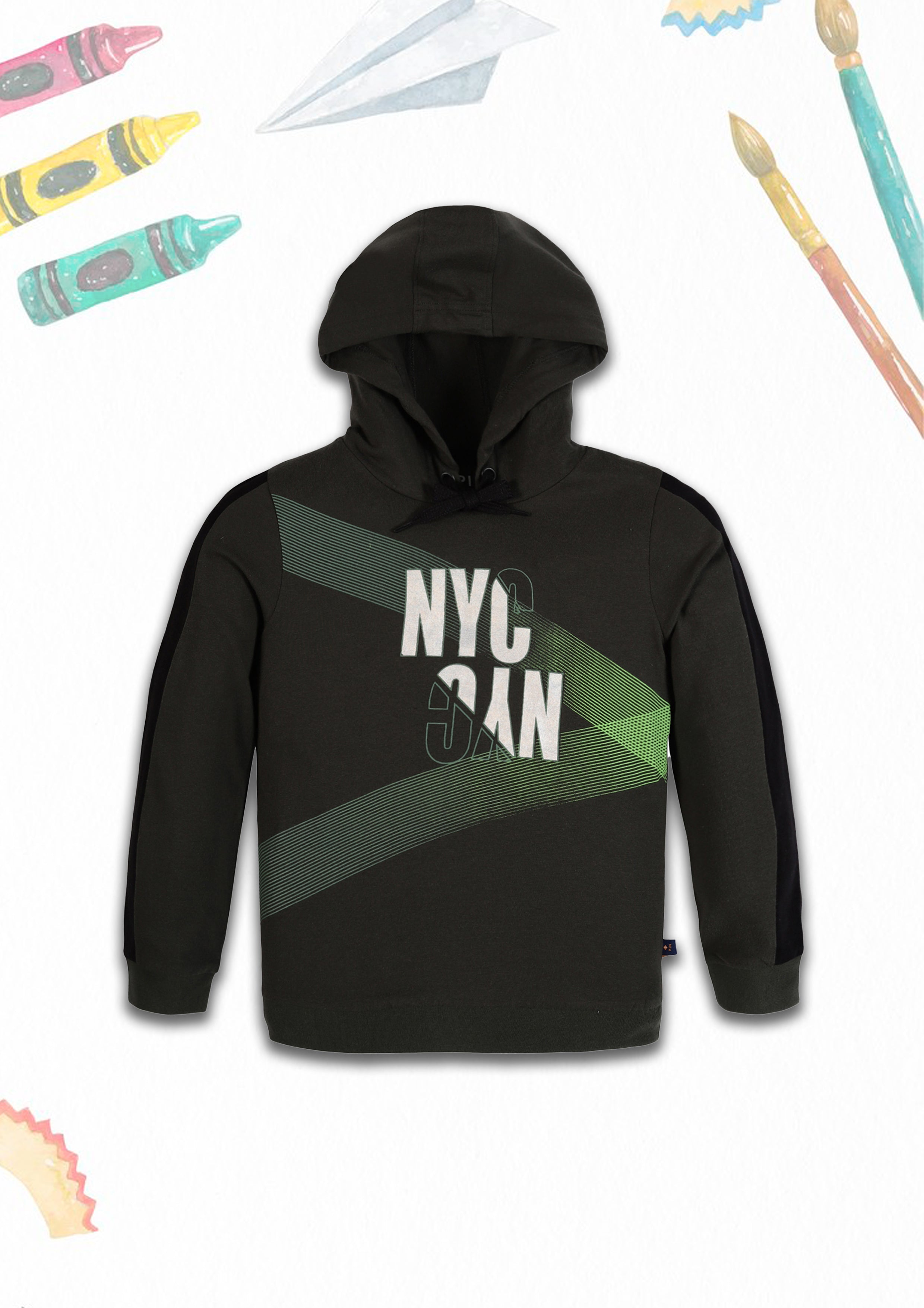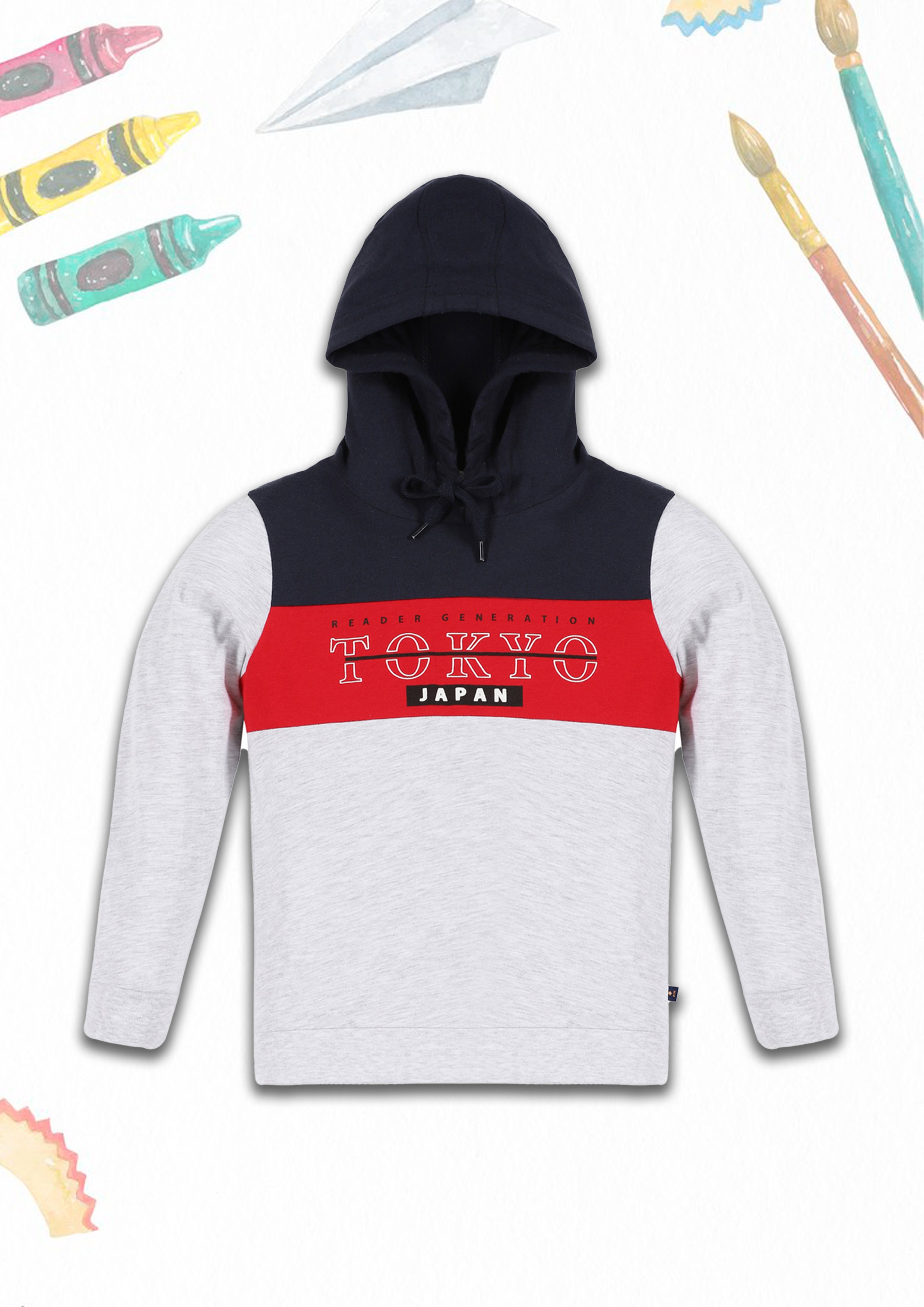 Boys Cotton Printed Round Neck Sweatshirts with Hoodie (Pack of 3)