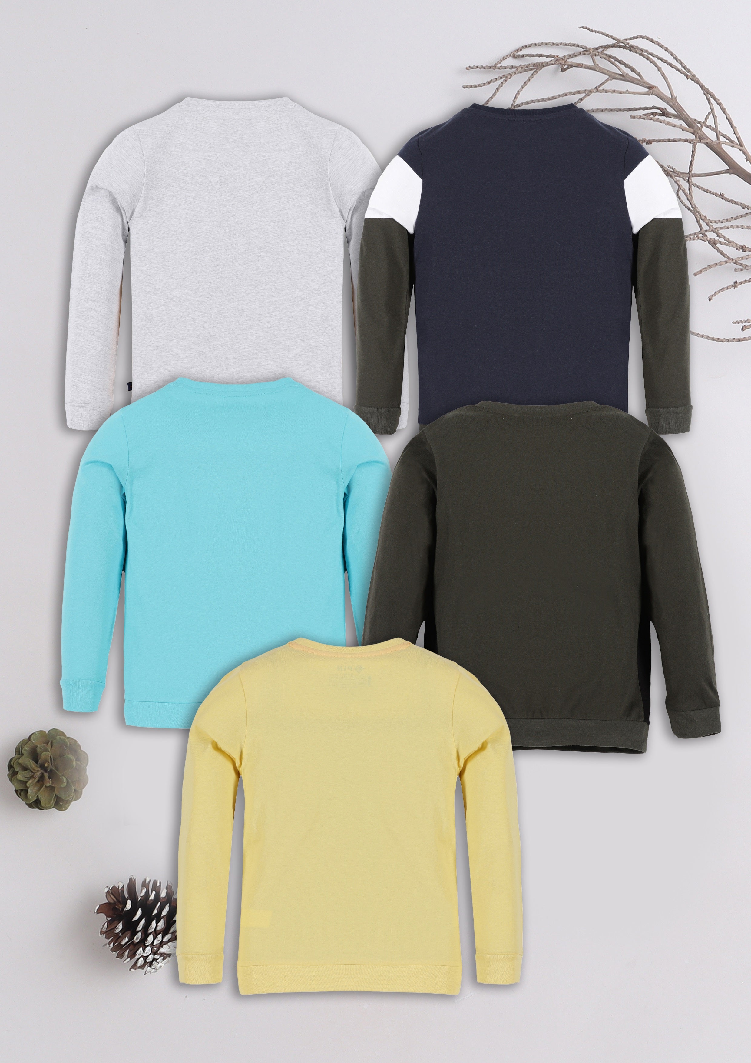Keep your little one cozy and stylish with this boys' cotton full-sleeve crew neck T-shirt. Crafted from soft, breathable cotton, this tee ensures all-day comfort for active kids. The crew neck design adds a classic touch, making it perfect for layering or wearing on its own. Whether paired with jeans, joggers, or shorts, this versatile T-shirt is an essential addition to any wardrobe. Durable and easy to care for, it's ideal for everyday wear, playtime, or casual outings.