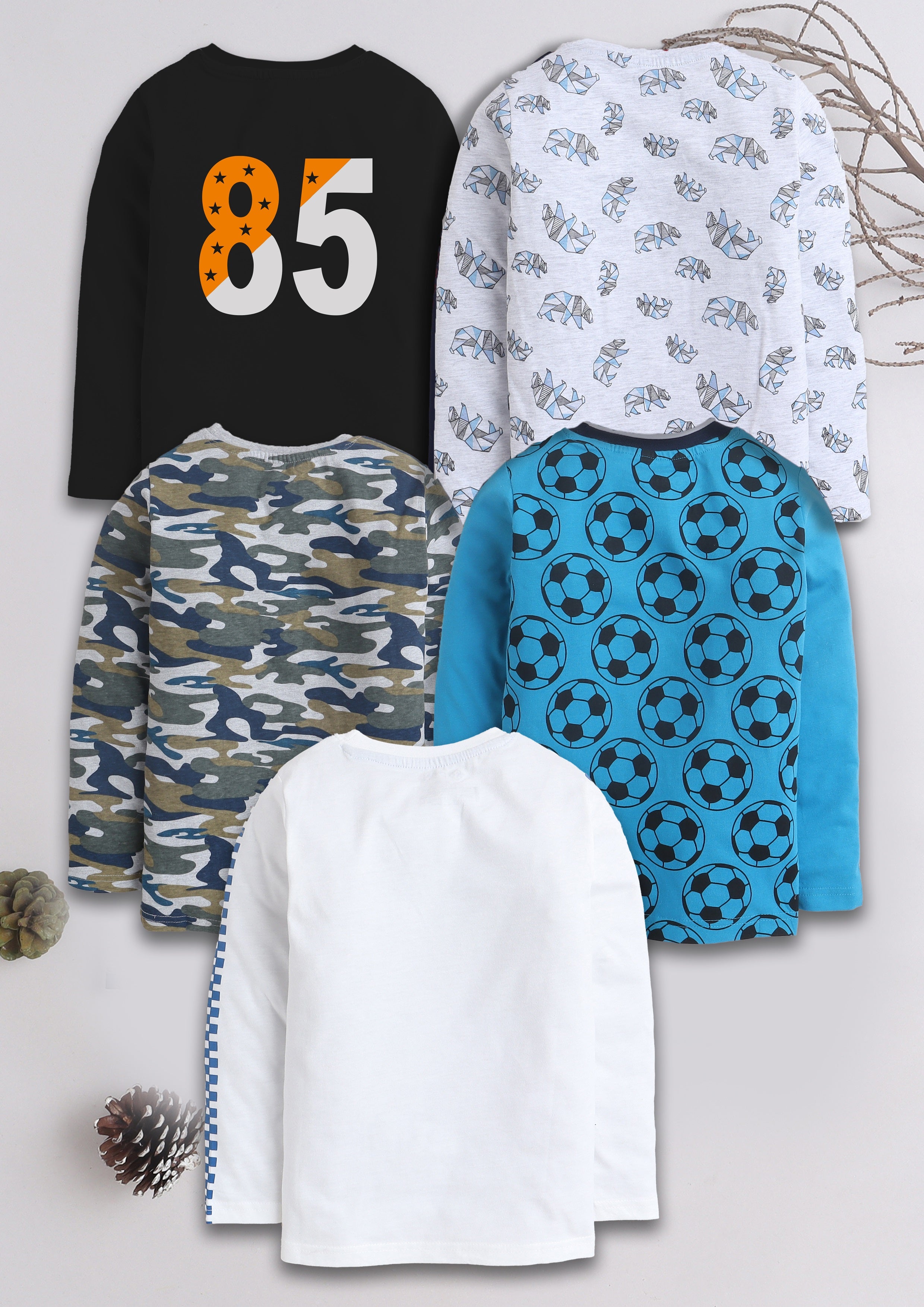 Boys Cotton Printed Round Neck T-Shirts (Pack of 5)