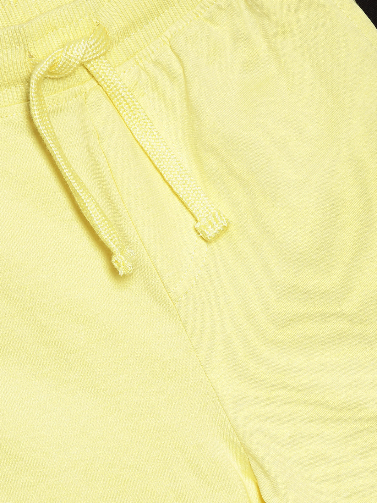 BOYS PACK OF 2 STRIPED AND COLOUR BLOCK 100% COTTON SHORTS - BLACK AND YELLOW