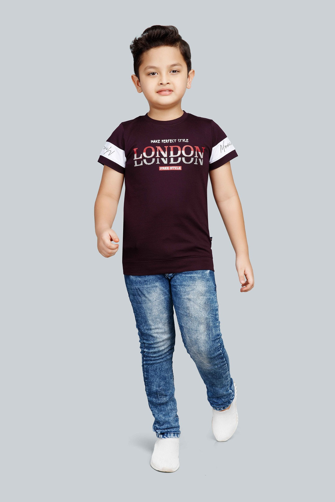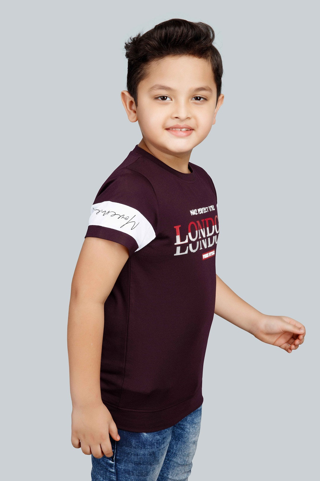 Boys Printed Typography Round Neck Cotton T-Shirt