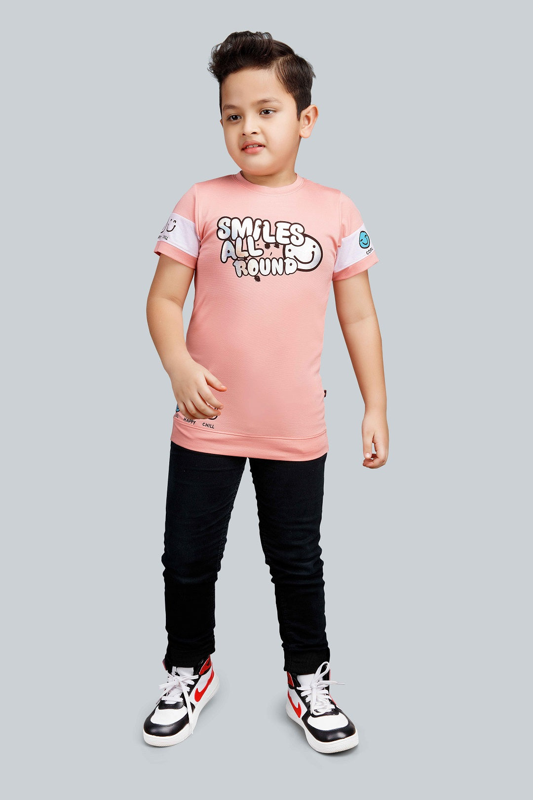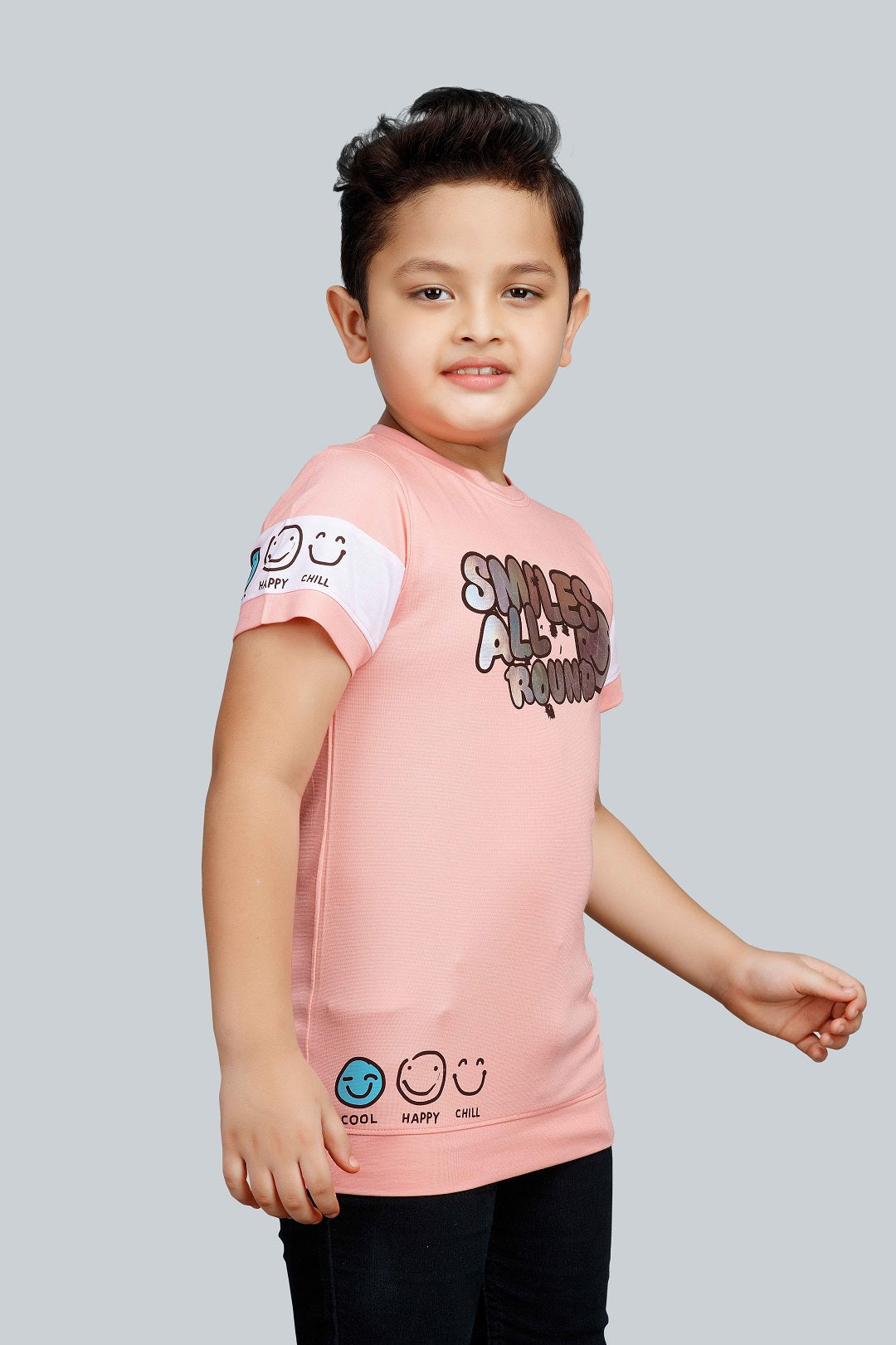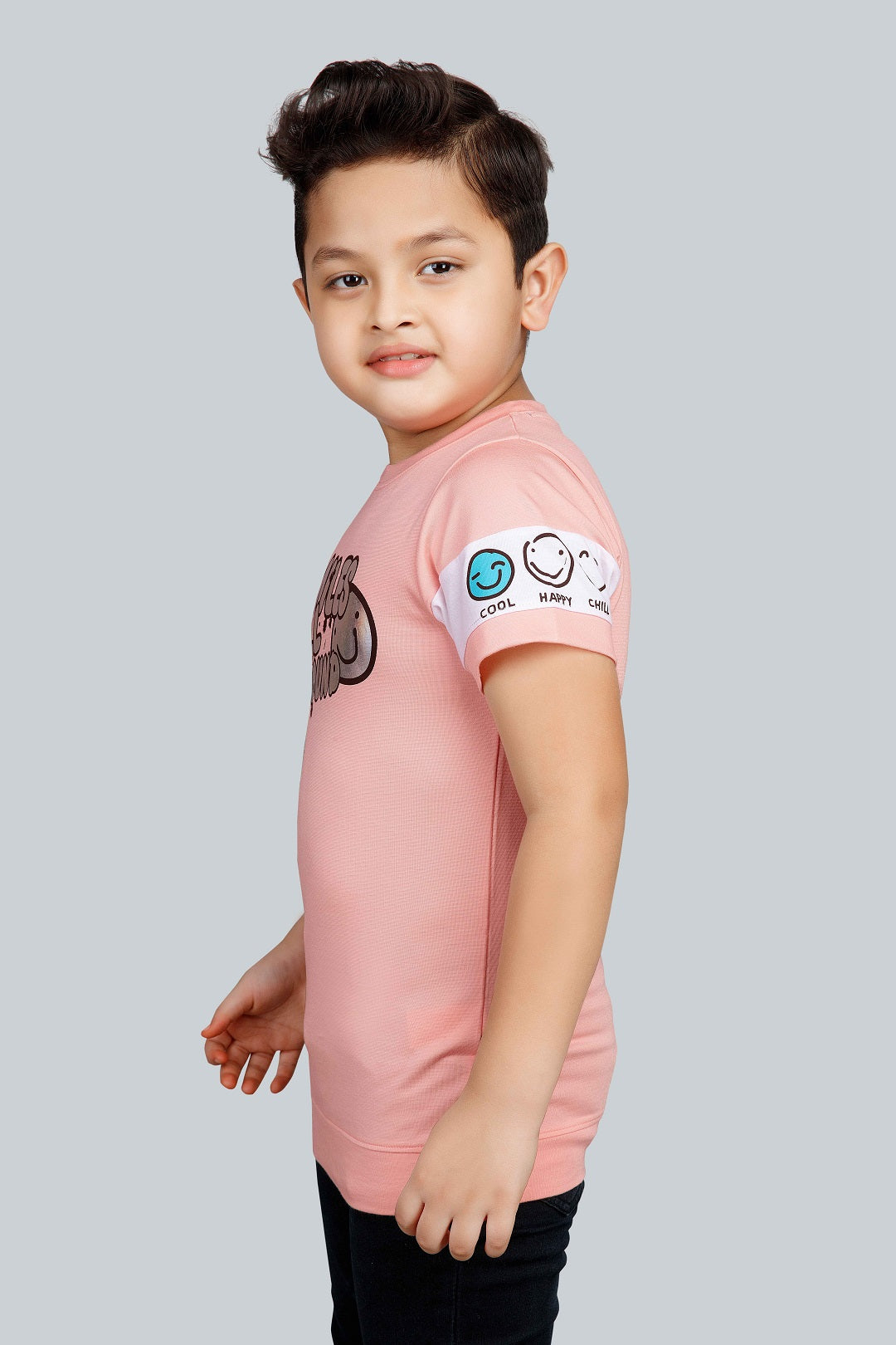 Boys Printed Typography Round Neck Cotton T-Shirt