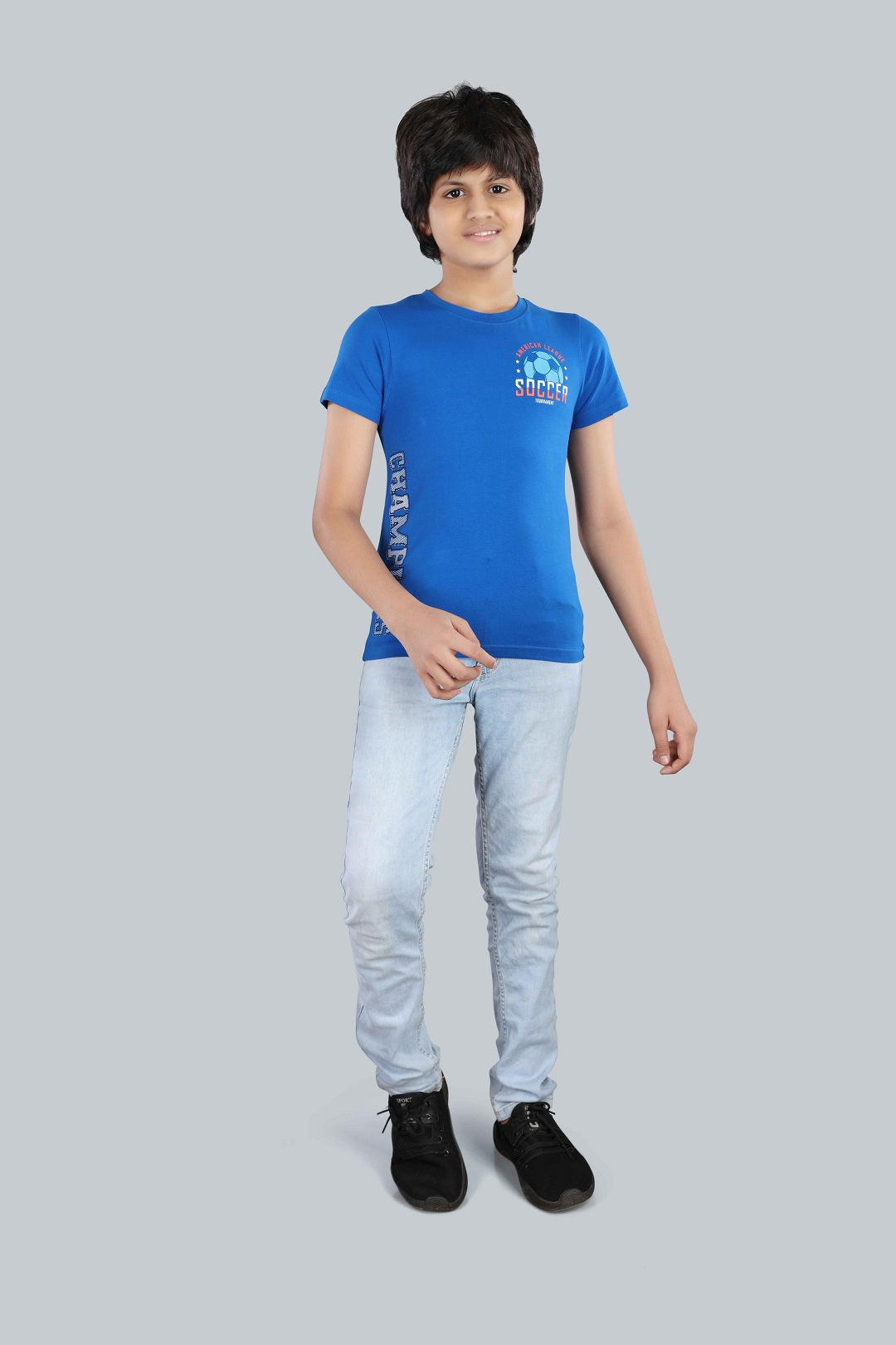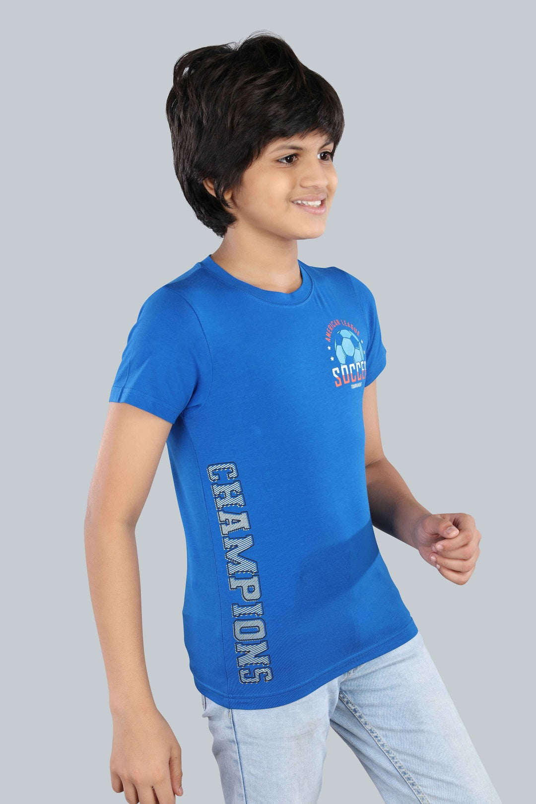 Boys Printed Typography Round Neck Cotton T-Shirt