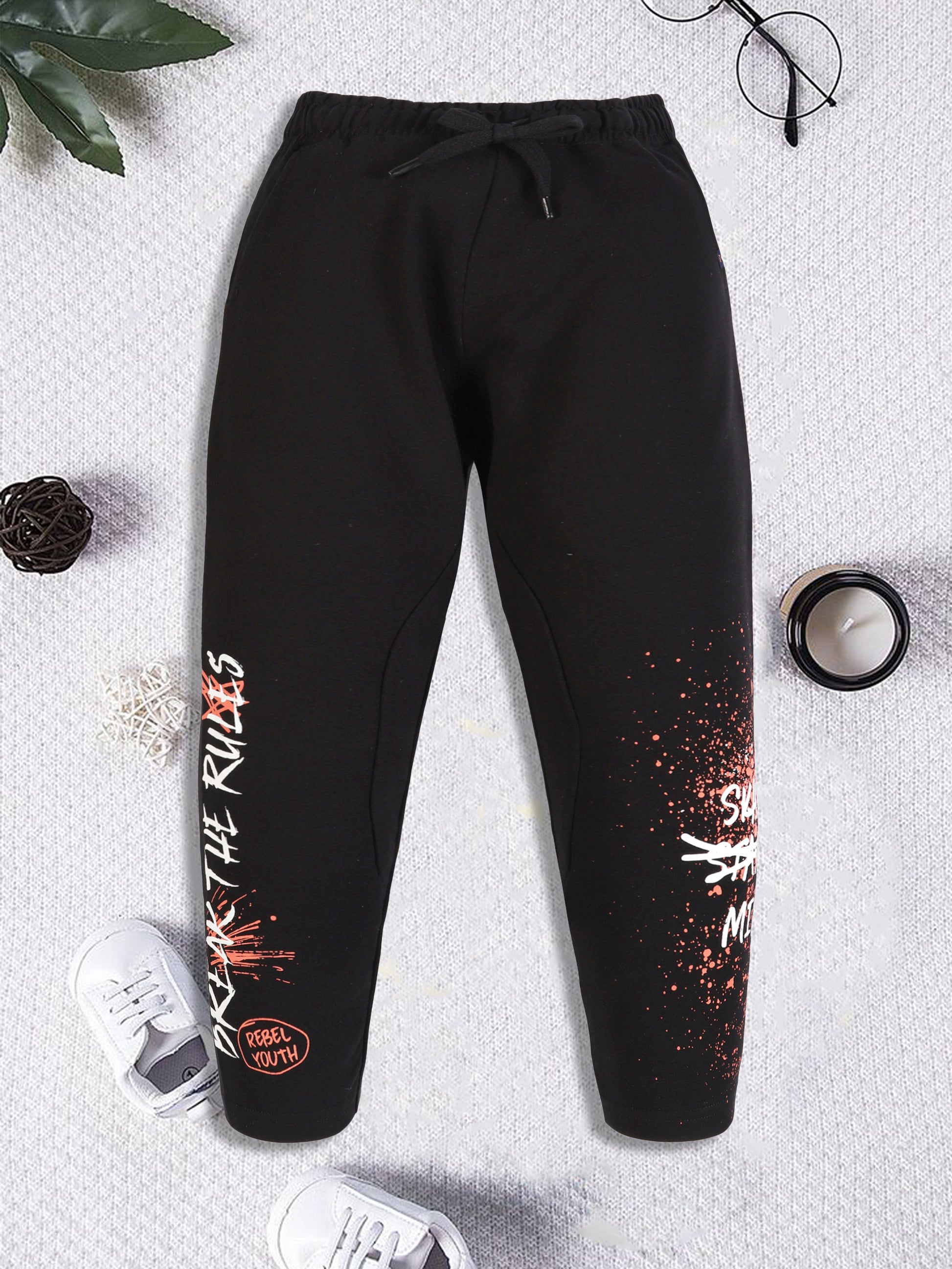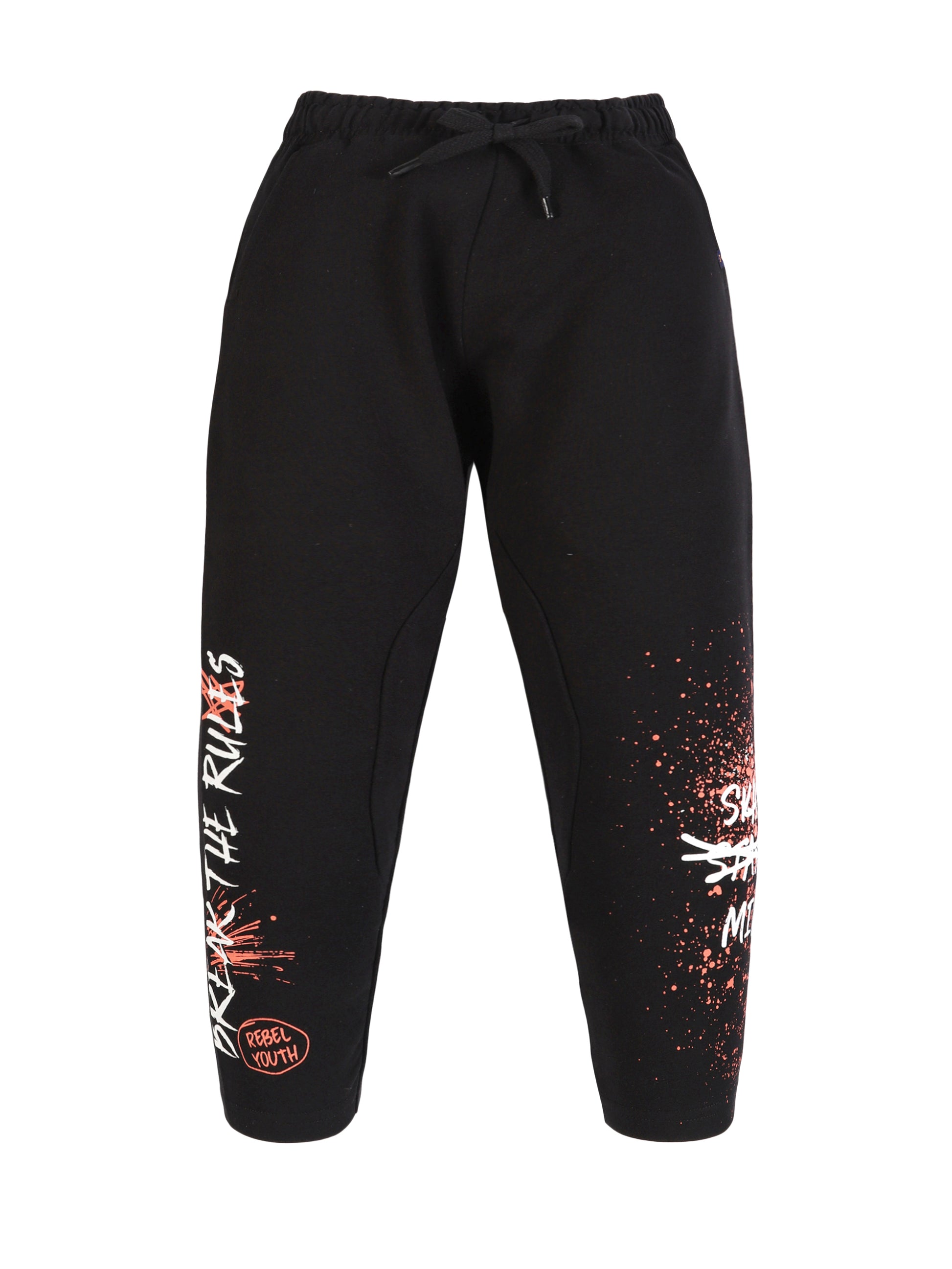 BOYS SOLID BREAK THE RULES PRINTED 100% COTTON 2 -14 YEARS JOGGERS -BLACK
