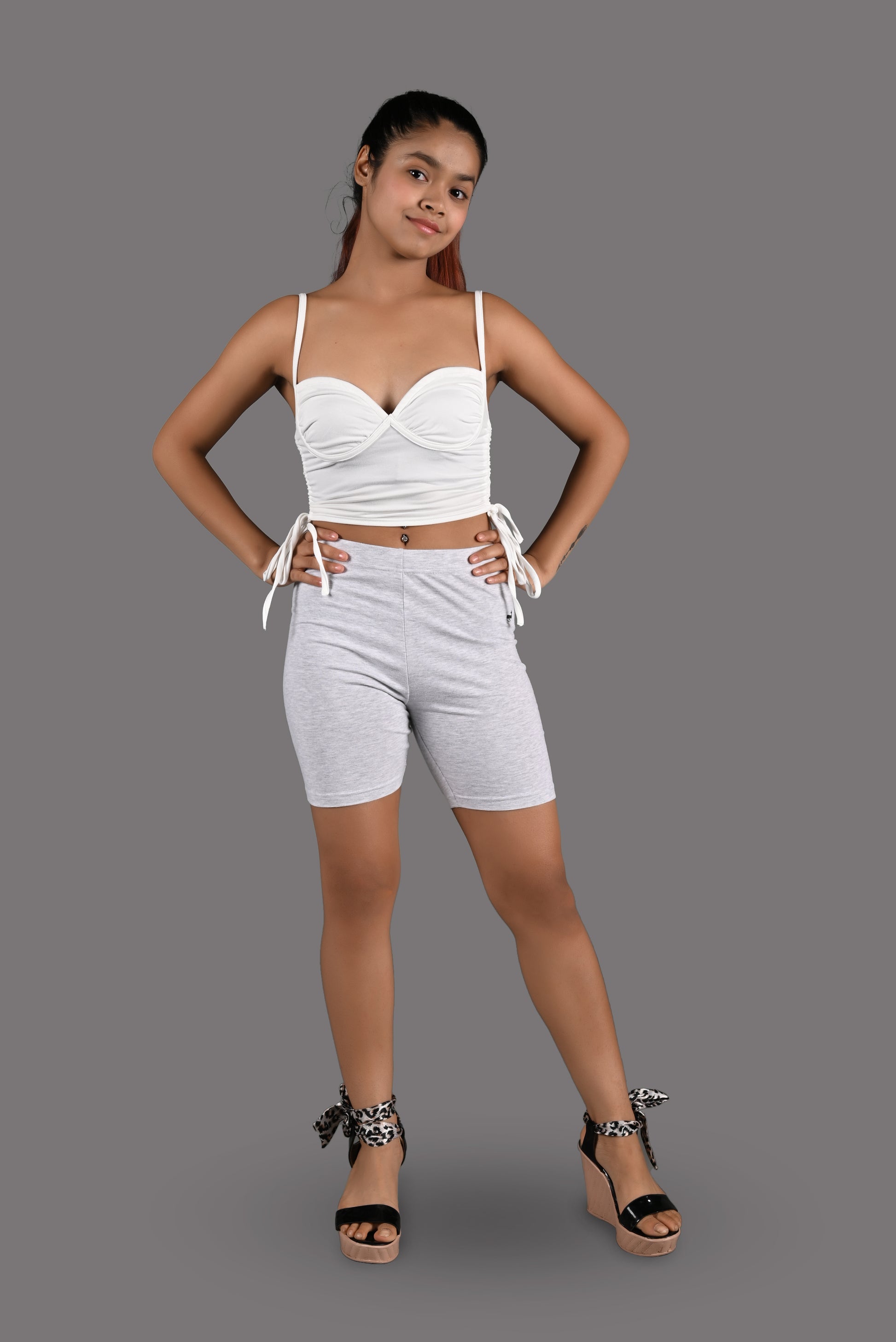 Cotton Lycra Solid Cycling Shorts - Black & Grey