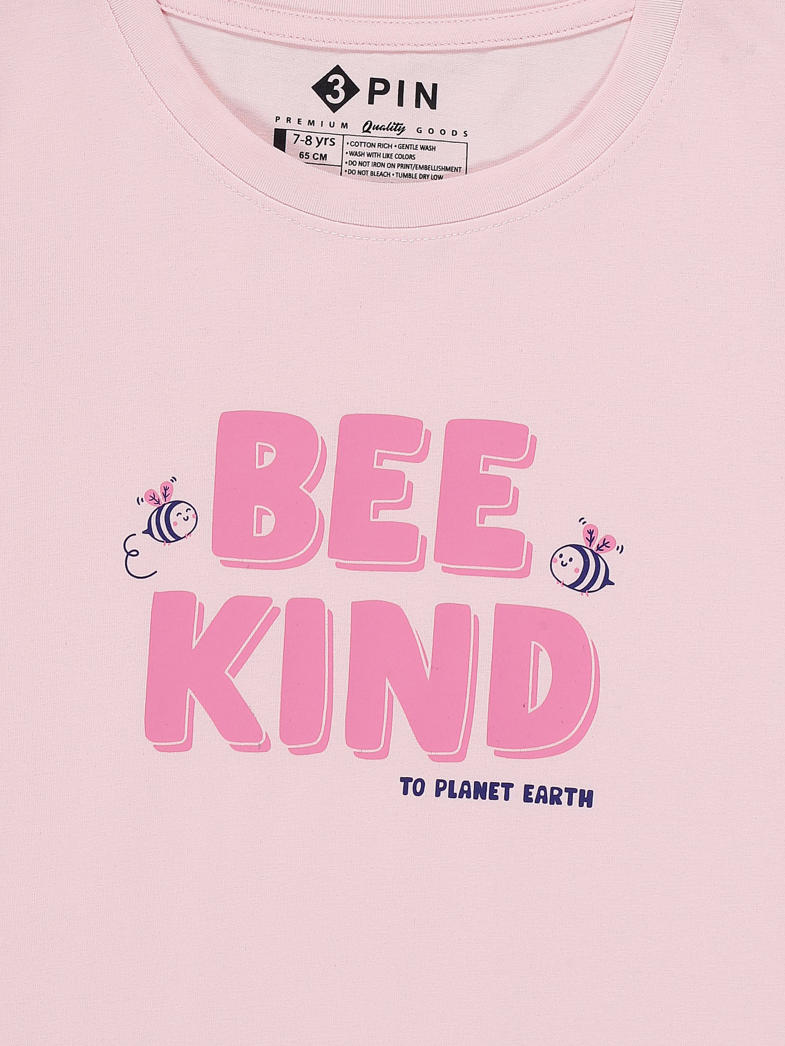 Girls Cotton Printed Round Neck T-Shirt