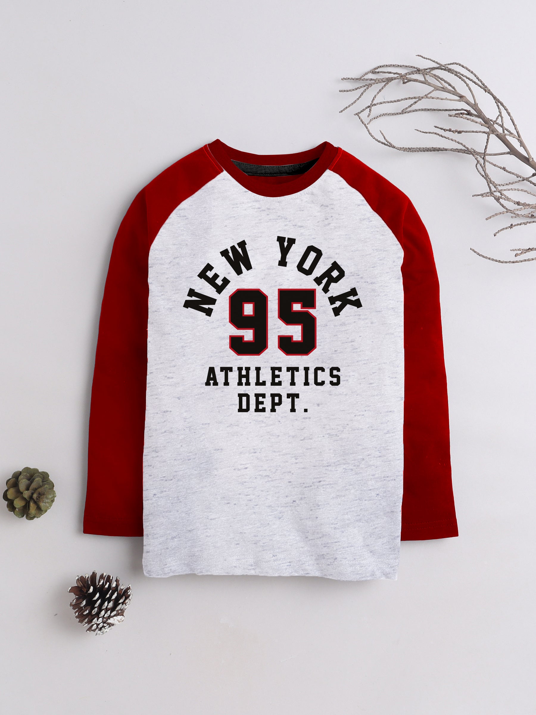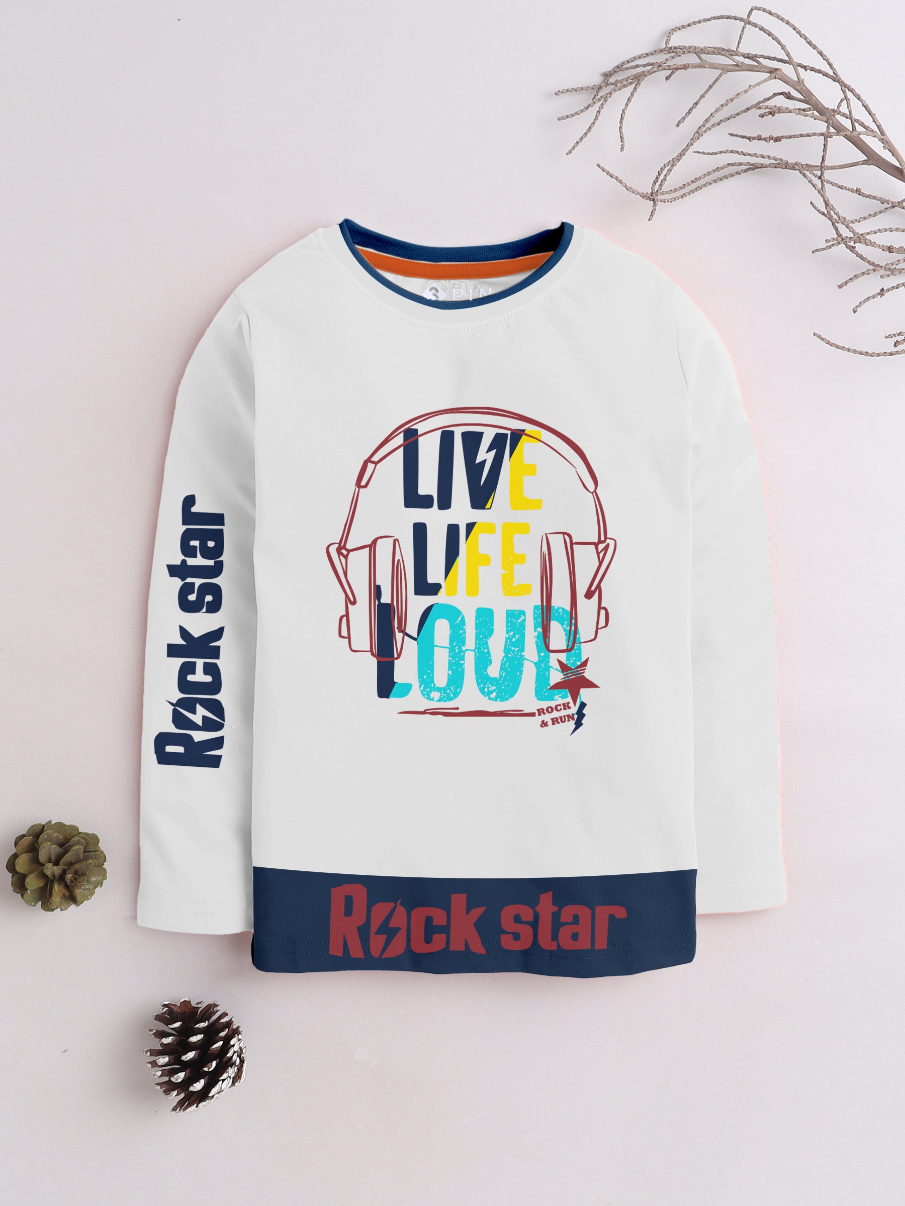 Keep your little one cozy and stylish with this boys' cotton full-sleeve crew neck T-shirt. Crafted from soft, breathable cotton, this tee ensures all-day comfort for active kids. The crew neck design adds a classic touch, making it perfect for layering or wearing on its own. Whether paired with jeans, joggers, or shorts, this versatile T-shirt is an essential addition to any wardrobe. Durable and easy to care for, it's ideal for everyday wear, playtime, or casual outings.